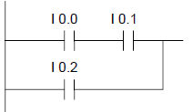 滿足下列條件之一時(shí),將會通過能流:①輸入端I0.0和I0.1的信號狀態(tài)為“1”時(shí);②或輸入端I0.2的信號狀態(tài)為“1”時(shí)。