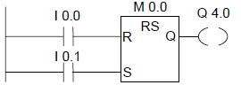 如果輸入端I0.0的信號狀態(tài)為“1”,I0.1的信號狀態(tài)為“0”,則置位存儲器位M0.0,輸出Q4.0將是“0”。否則,如果輸入端I0.0的信號狀態(tài)為“0”,I0.1的信號狀態(tài)為“1”,則復(fù)位存儲器位M0.0,輸出Q4.0將是“1”。如果兩個(gè)信號狀態(tài)均為“0”,則不會發(fā)生任何變化。如果兩個(gè)信號狀態(tài)均為“1”,將因順序關(guān)系執(zhí)行置位指令;置位M0.0,Q4.0將是“1”。