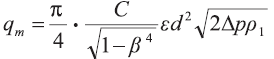 公式中:qm為質(zhì)量流量,kg/h;C為流出系數(shù);β為直徑比β=d/D;D為管道直徑,mm;ε為可膨脹系數(shù);d為開孔直徑,mm;Δp為差壓,kPa;ρ1為節(jié)流件正端取壓口平面上的流體密度,kg/m3。