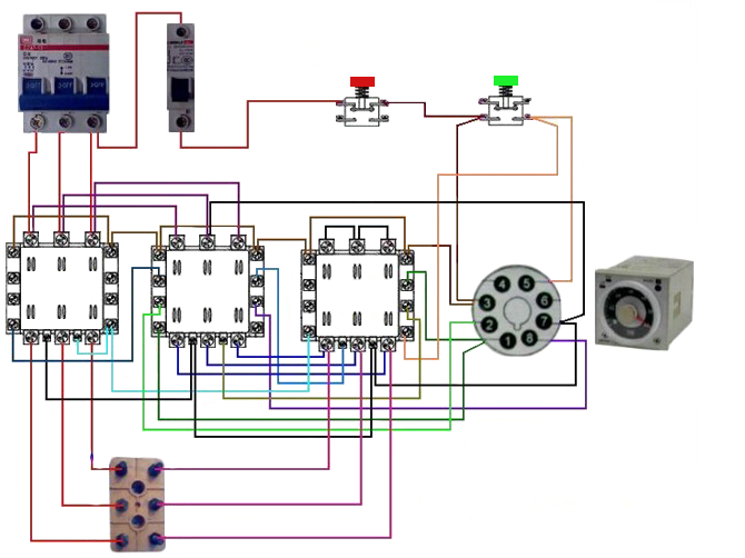 圖5     星形-三角形降壓啟動電路元件實物連線圖