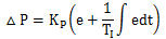 ④比例積分控制輸入e與輸出P(或△P)的關(guān)系式: