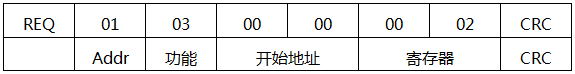 ①定義defbyte數組依次拼接地址碼,功能碼,寄存器開始地址,寄存器數量,如表1所示。