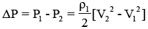 應用別努利方程和流動連續性原理,在兩個橫截面上則有如下關系式: