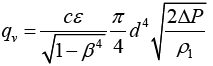 公式⑥中ε被測介質的可膨脹性系數,一般來說對于液體ε=1;對氣體、蒸汽等可以壓縮流體ε<1;qv為流體的體積流量,單位:m3/s);ρ1為工作狀況下,節流件(前)上游處流體的密度,單位:kg/m3;d為工作狀況下節流件的等效開孔直徑,單位:m;△P為差壓,△P=P1-P2,單位:Pa。
