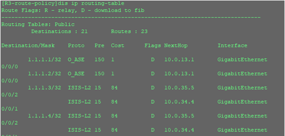 [R3-isis-1]import-route ospf 1 route-policy oti