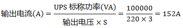 舉例3:已知:UPS功率100kVA;輸出電壓220V;S=3(三相UPS)。