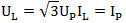 ,其中UP、IP為相電壓和相電流,在三相對稱電路中,負載三角形連接時,