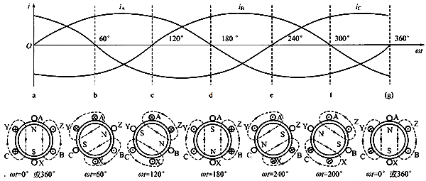 解釋三相異步交流電動機中異步的含義不得不提三相異步電動機工作原理。三相異步電動機是由定子和轉子兩部分構成的,其中定子的目的是產生旋轉磁場。三相異步電動機的定子繞組是一個空間位置對稱的三相繞組,在定子繞組通入三相對稱的交流電流電,這樣就會在電動機內部建立起一個恒速旋轉的磁場。旋轉磁場的方向是由三相電流的相序決定的,即把通入三相繞組中的電流相序任意調換其中的兩相,就可改變旋轉磁場的方向。