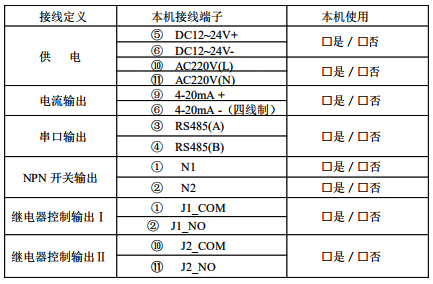 信號輸出:□0-20mA □4-20mA □0-5V □1-5V □0-10V □1-10V □RS485 □GPRS □LORA □RF □HART □其它