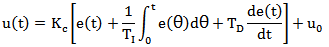 u(t)為PID控制器輸出;u0為初始PID控制器輸出;Kc為總增益;TI為積分時(shí)間或重置時(shí)間;TD為微分時(shí)間;e(t)為設(shè)定值和過程值得偏差