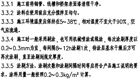 3.5.10 金屬鋼管、線槽、橋架的防火涂料的涂刷長度與電纜的防火涂料的涂刷長度要求是一致的。