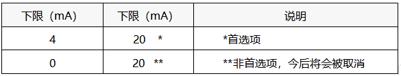GB/T 3369.1-2008《過程控制系統用模擬信號 第1部分:直流電流信號》中模擬直流電流信號(負載電阻為0-300Ω)的規定見表1