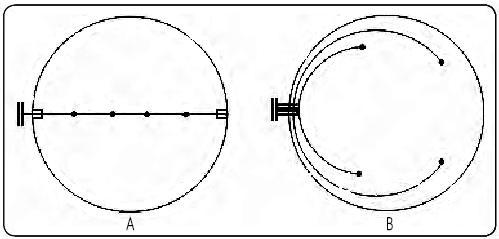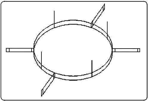 2、B是熱電偶成環(huán)形分布,從反應(yīng)器側(cè)面法蘭口插入,按提前設(shè)計(jì)好的路徑進(jìn)行安裝。該方案根據(jù)不同的工藝要求需要二次設(shè)計(jì)安裝支架,可以在反應(yīng)器內(nèi)構(gòu)件上焊接支架,對(duì)于測(cè)溫點(diǎn)沒有內(nèi)構(gòu)件的可以在反應(yīng)器器壁上焊接支架,或獨(dú)立設(shè)計(jì)支架,如圖2所示。其優(yōu)點(diǎn)是可應(yīng)用于測(cè)溫點(diǎn)多且非直線分布的場(chǎng)合;缺點(diǎn)是設(shè)計(jì)量大,安裝復(fù)雜,支架全部使用螺栓聯(lián)接,對(duì)支架長周期使用的穩(wěn)定性提出較高的要求。