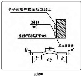 這種方案只要前期設(shè)計(jì)準(zhǔn)確,安裝是比較方便靈活的,且預(yù)埋件體積小,數(shù)量少,可有效減小焊接對(duì)反應(yīng)器器壁堆焊層的影響。