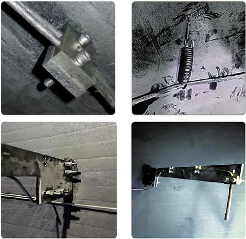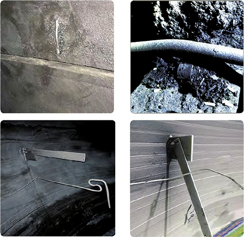通過渣油加氫換劑檢修時(shí)發(fā)現(xiàn),延長支架嚴(yán)重下垂,大量熱電偶從支架脫落,甚至直接斷裂,如圖4所示。分析原因主要有兩點(diǎn):