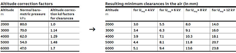 例如當(dāng)海拔為2000米時,電氣間隙的倍增系數(shù)為1,當(dāng)海拔為4000米時,如果還想保持原來的額定沖擊耐受電壓值,其電氣間隙需要增加至原來電氣間隙的1.29倍。