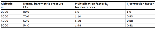 其中H為海拔高度,m在低壓一般取0.5,例如對于4000米海拔時Ka系數(shù)為1.28,意味著如果原來低壓電器的額定絕緣電壓為690V(2000米海拔),那么4000米海拔時其額定絕緣電壓要達(dá)到690V×1.28≈883.2V。