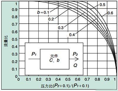 以三位五通電磁閥SY3320-5DZD-M5為例,查表可知其C=0.48dm3/(s·bar),b=0.46;