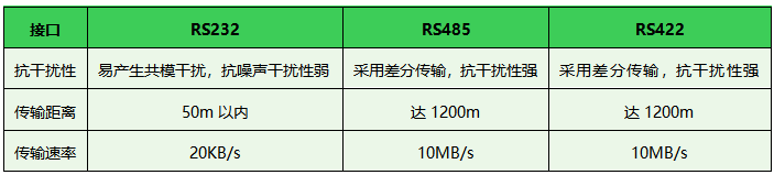 RS232傳輸速率較低,在異步傳輸時(shí),波特率為20Kbps。RS485的數(shù)據(jù)最高傳輸速率為10Mbps。