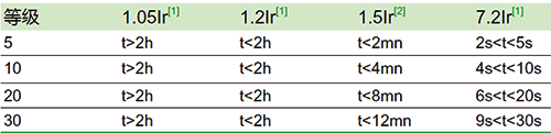 圖2 塑殼和框架斷路器的約定脫扣電流