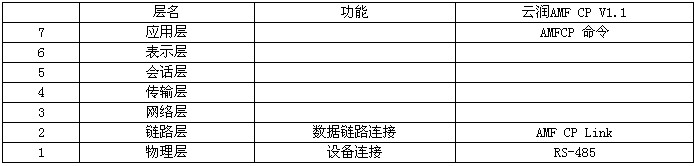 AMF CP V1.1協議遵從基本開放系統互連(OSI)參考模型,基本開放系統互連參照模型提供通訊系統基本結構和要素,但昌暉AMF CP V1.1協議使用簡化的OSI參照模型,僅采用1、2和7層。基本開放系統互連參考模型