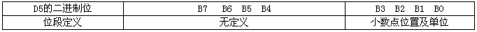 D5字節以段位方式定義流量單位、小數點位置: