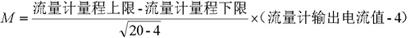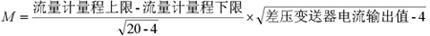,式中M為流量,K為常數,ρ為介質密度,△P為差壓值。差壓已由差壓變送器轉換為電流I,所以本臺流量計的流量與電流的關系如下:
